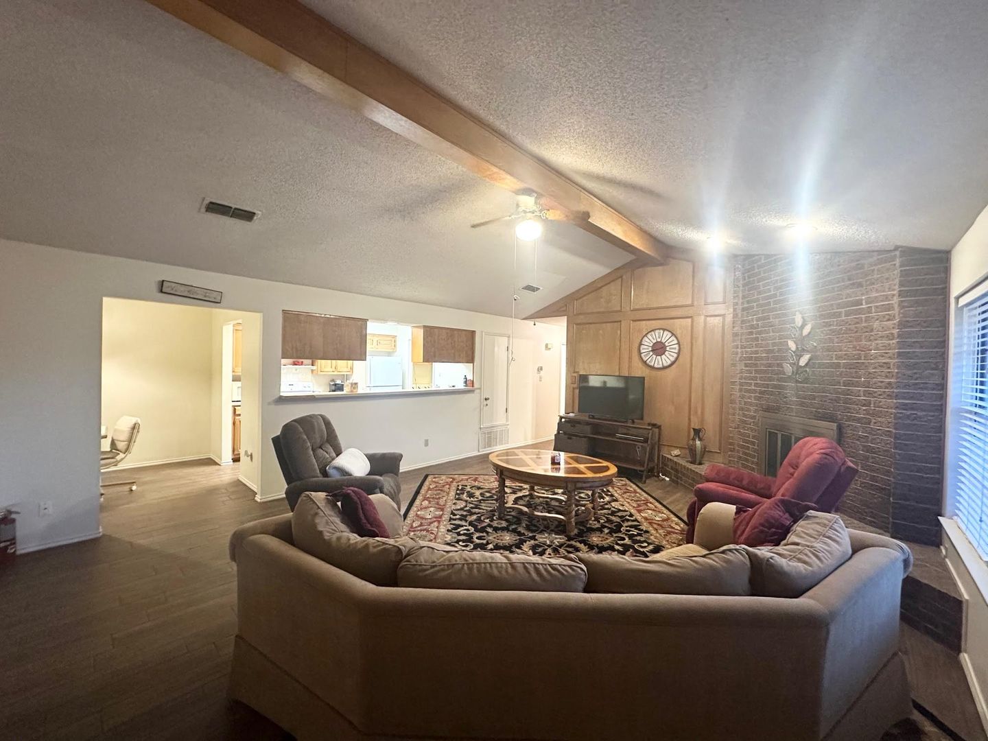 This property boasts two spacious bedrooms and two full bathrooms, offering ample space for comfortable living. The home comes fully furnished, eliminating the hassle of moving and setting up furniture. The large backyard provides a great outdoor space for relaxation or entertaining, while the expansive driveway ensures plenty of parking space. Its central location in town means you're never far from local amenities, making everyday errands a breeze.